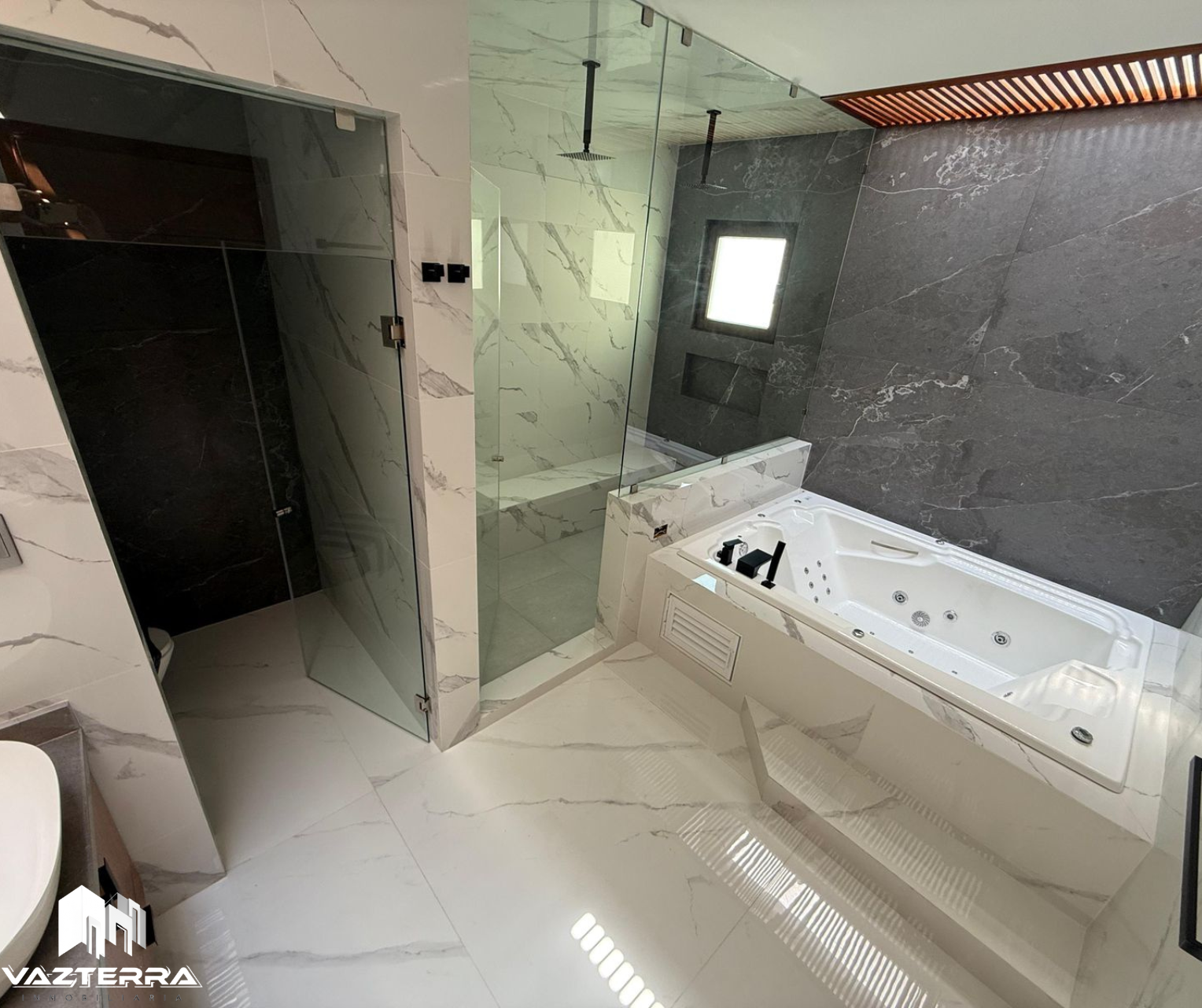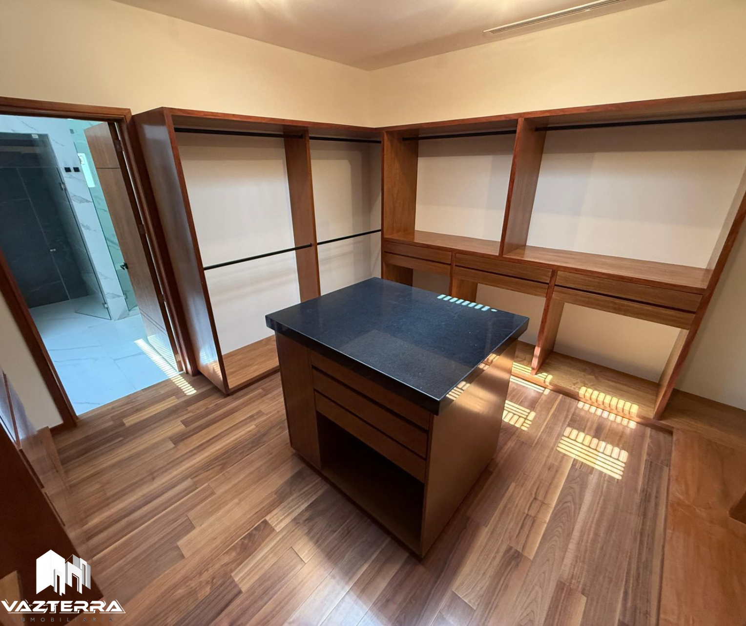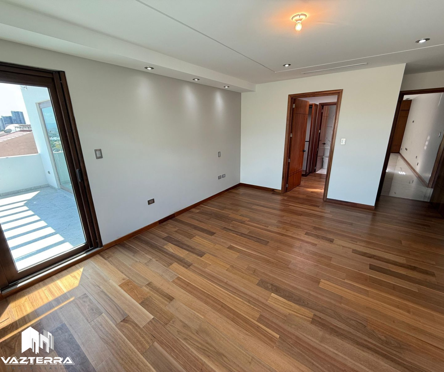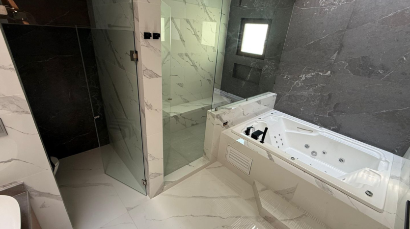 Recámara principal con vestidor amplio, terraza privada, baño con doble regadera, tina y vapor
