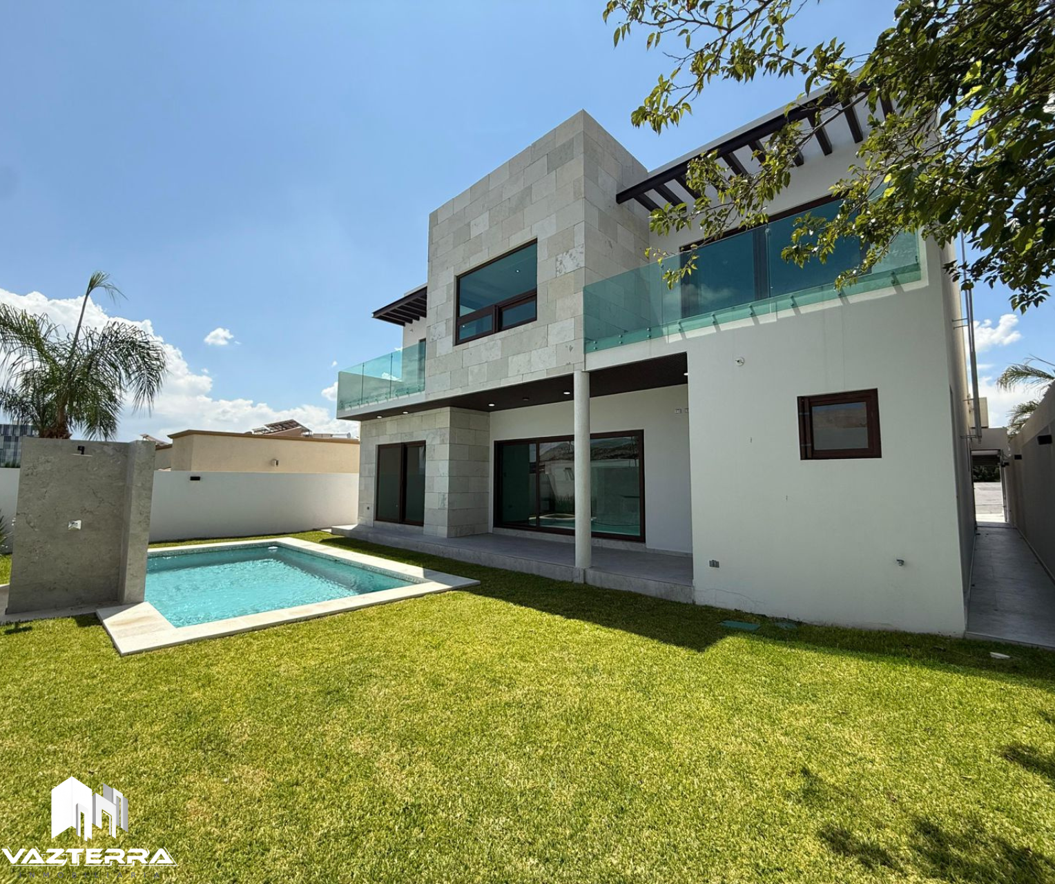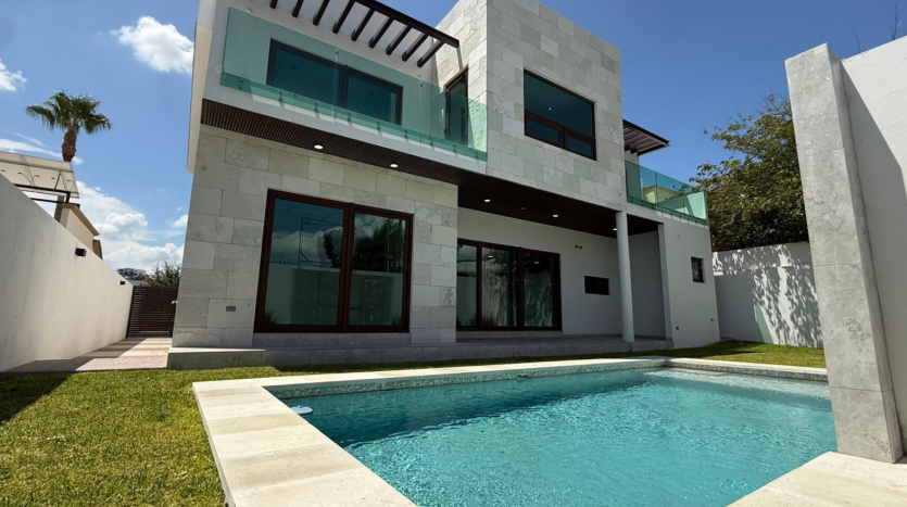 Alberca con cascada, cuarto de máquinas y medio baño independiente