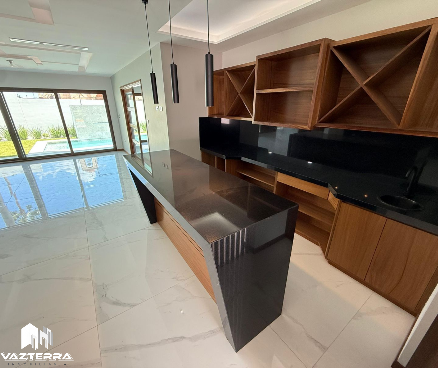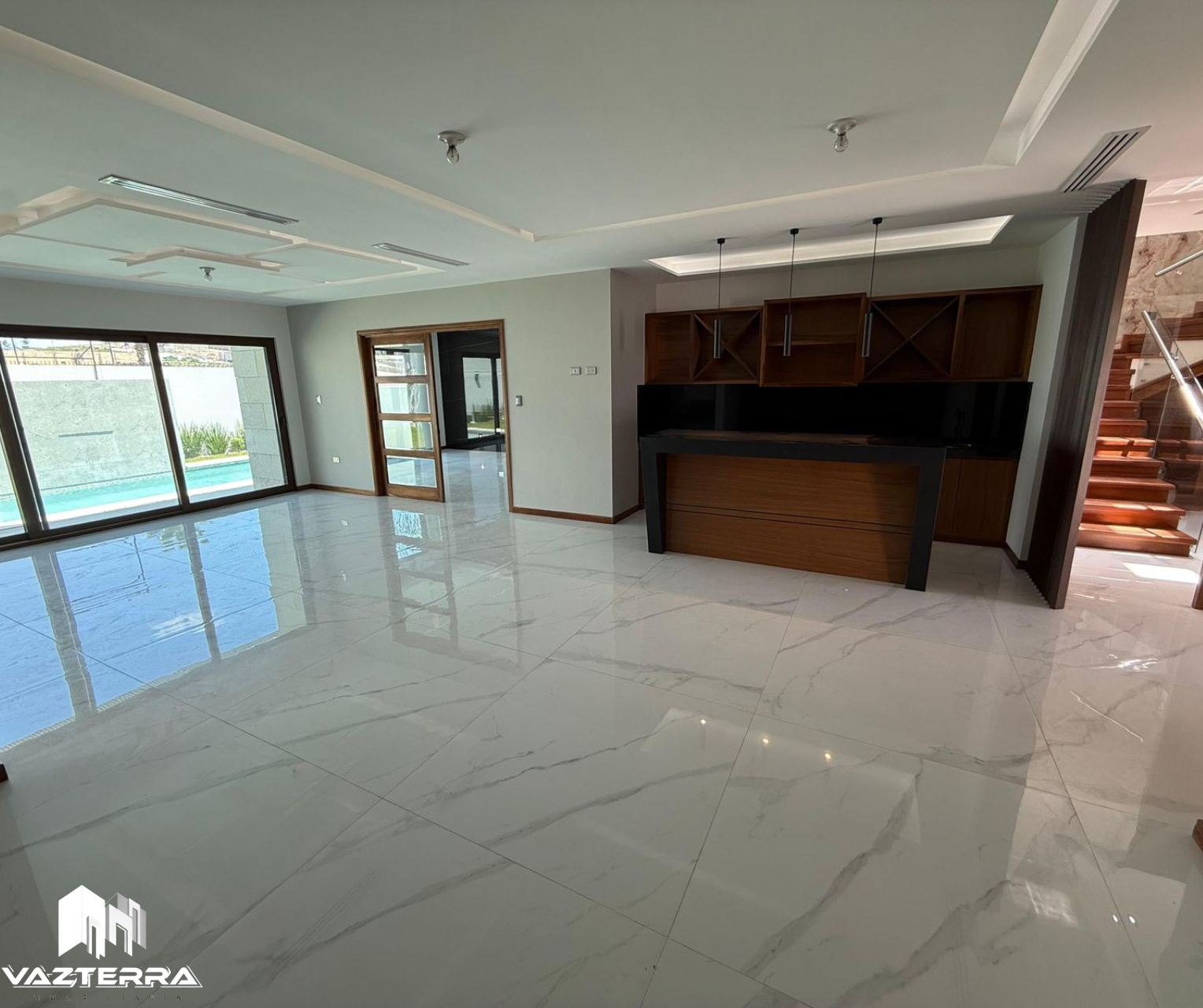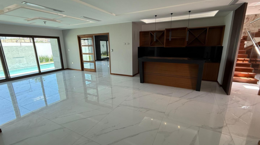 Estancia y comedor amplios con área de bar